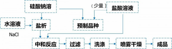 酸性硅溶膠兩步法制高補強性白炭黑工藝流程簡圖