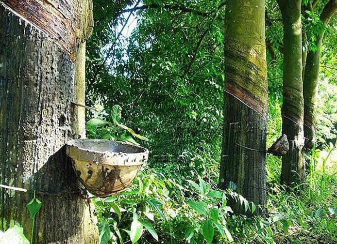 天然橡膠是用從橡膠樹上采集的樹膠,經過過濾、凝固制成。一般在樹齡5-7年的橡膠樹皮上傾斜切口后采得,橡膠樹一般可采集25-30年。橡膠樹生長需高溫多雨的環境,在年平均氣溫26-32℃之間、年平均降雨量在2000mm以上的熱帶地區栽培,因此其產地分布于南北緯10°以內,多集中在東南亞地區。由于天然橡膠是采自于多年生木本植物橡膠樹,雖整年都可采膠液,但其產量隨季節性而變動。因此不能在短期內調整供應,市場變化周期較長,但又因其本身的重要性,對世界經濟及重大政治事件有著強烈的反應,所以人們開發出化學方法的合成橡膠來滿足生產生活的需求。