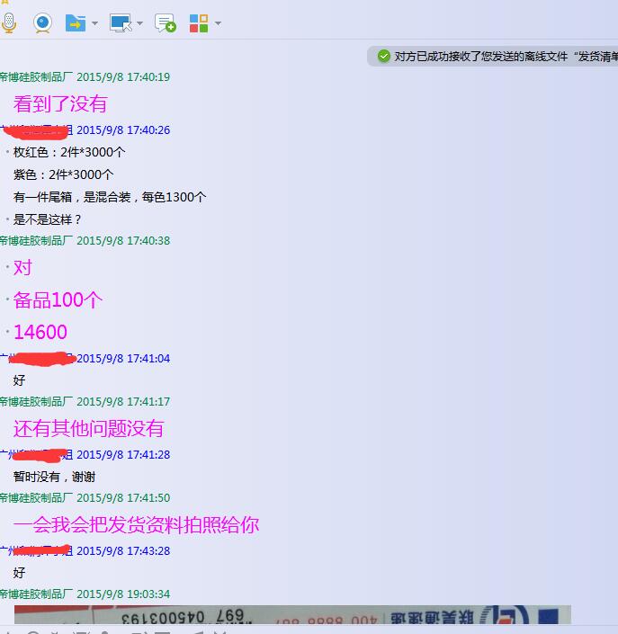 昨天,在阿里旺旺上面接到一個客戶,根據她提供的信息,找的是一款當下比較暢銷的硅膠制品,這款產品是我們公司的現有模具,因為產品的特殊性,要求提供樣品。 我核對客戶信息資料后,我答應給他免費寄一些現有的實物樣品,運費是到付的那種??蛻裟沁呉餐饬诉\費到付,這樣,我給客戶寄過去一些類似的樣品。