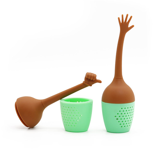 創意手臂結構,可輕易拿去,用于高低溫浸泡茶,可反復使用,長期高溫接觸不變形,清洗便捷,純硅膠泡茶器,創意硅膠生活用品,顏色亮麗,對沸水不產生任何雜質以及產品上的材料殘留雜物等,可使用于水杯,水壺以及大型鍋碗等等