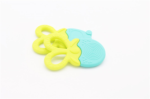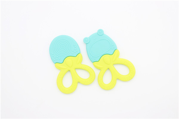 卡通青蛙硅膠牙齒矯正器簡稱硅膠牙膠,磨牙棒,此款牙膠主要采用雙色粘接成型工藝制作,有良好的生動性與立體感,讓嬰兒寶寶愛不釋手,材料安全環保,可放心與口腔身體皮膚接觸。