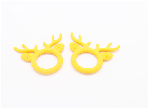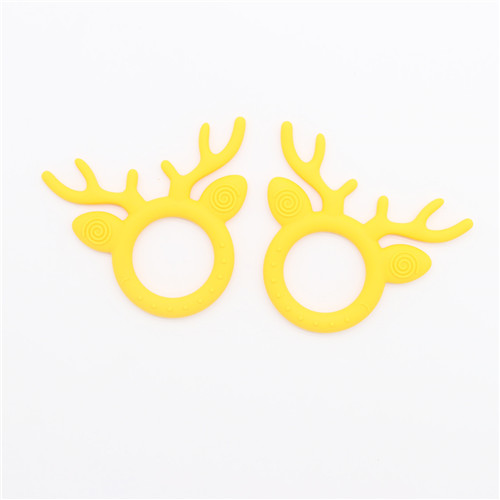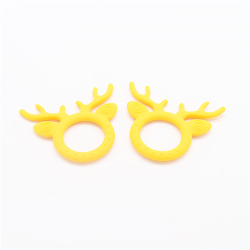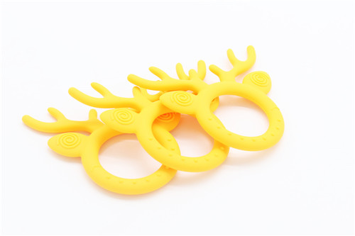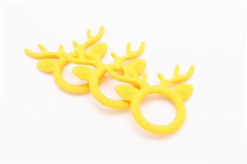 鹿角牙膠主要以卡通圓弧形加鹿角結構結合而后才能,才有40度柔軟原材料生產鹿角部分可直接入口咬合,角部R角弧形偏大不會對口腔造成影響危害,圓形圈握手直徑6M可直接手握玩耍,設計完全符合幼兒使用設計。